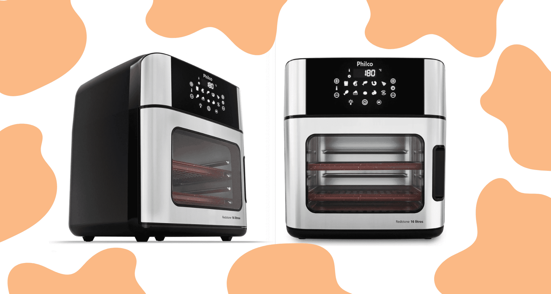 Os acessórios que acompanham a PAF16A — incluindo o cesto removível de 5,5 litros — contam com o revestimento cerâmico Redstone, exclusivo da Philco. Essa camada antiaderente evita que os alimentos grudem, facilita a limpeza e tem maior durabilidade em comparação aos antiaderentes convencionais.