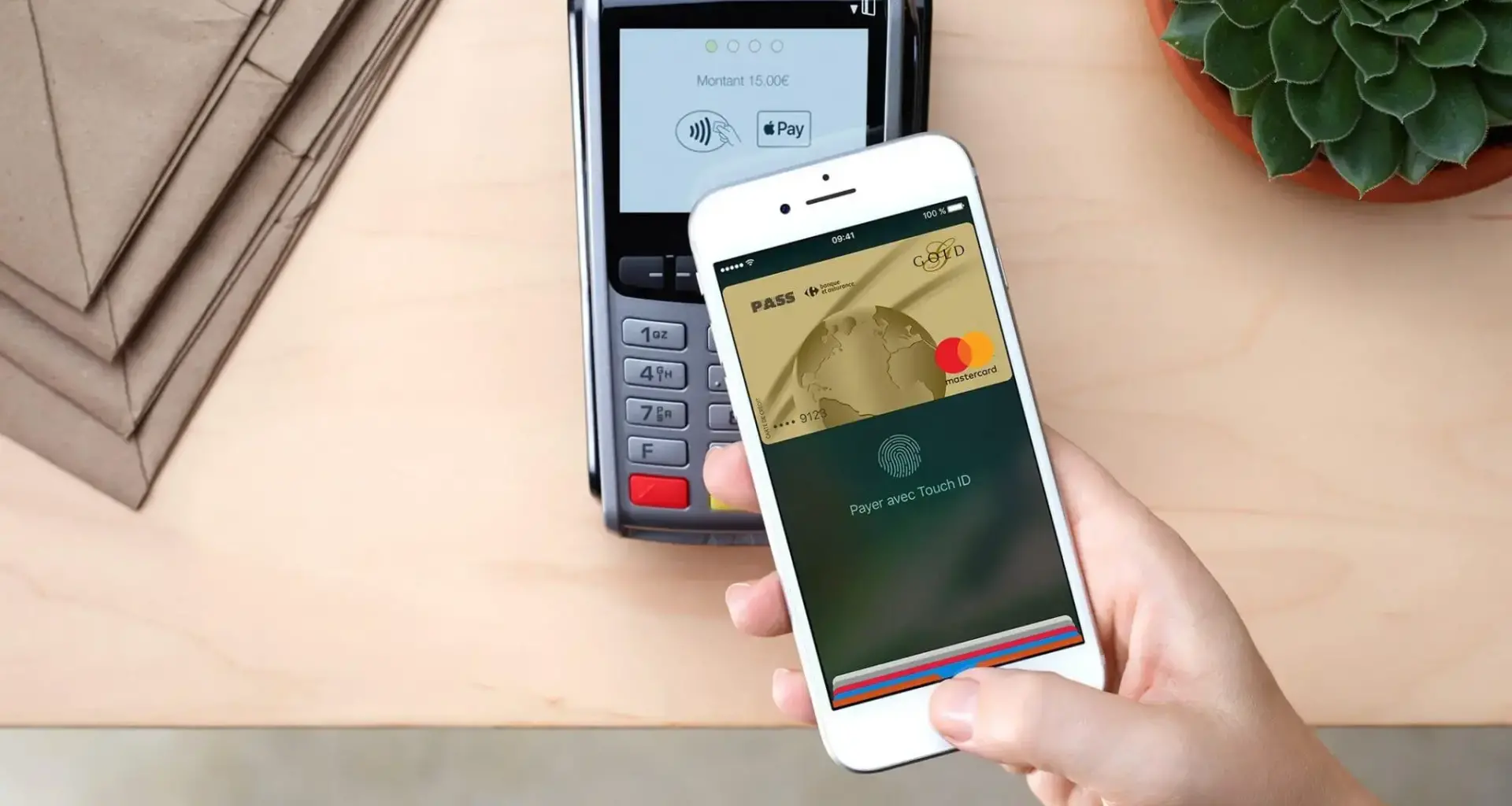 Dinheiro, cartão e Apple Pay