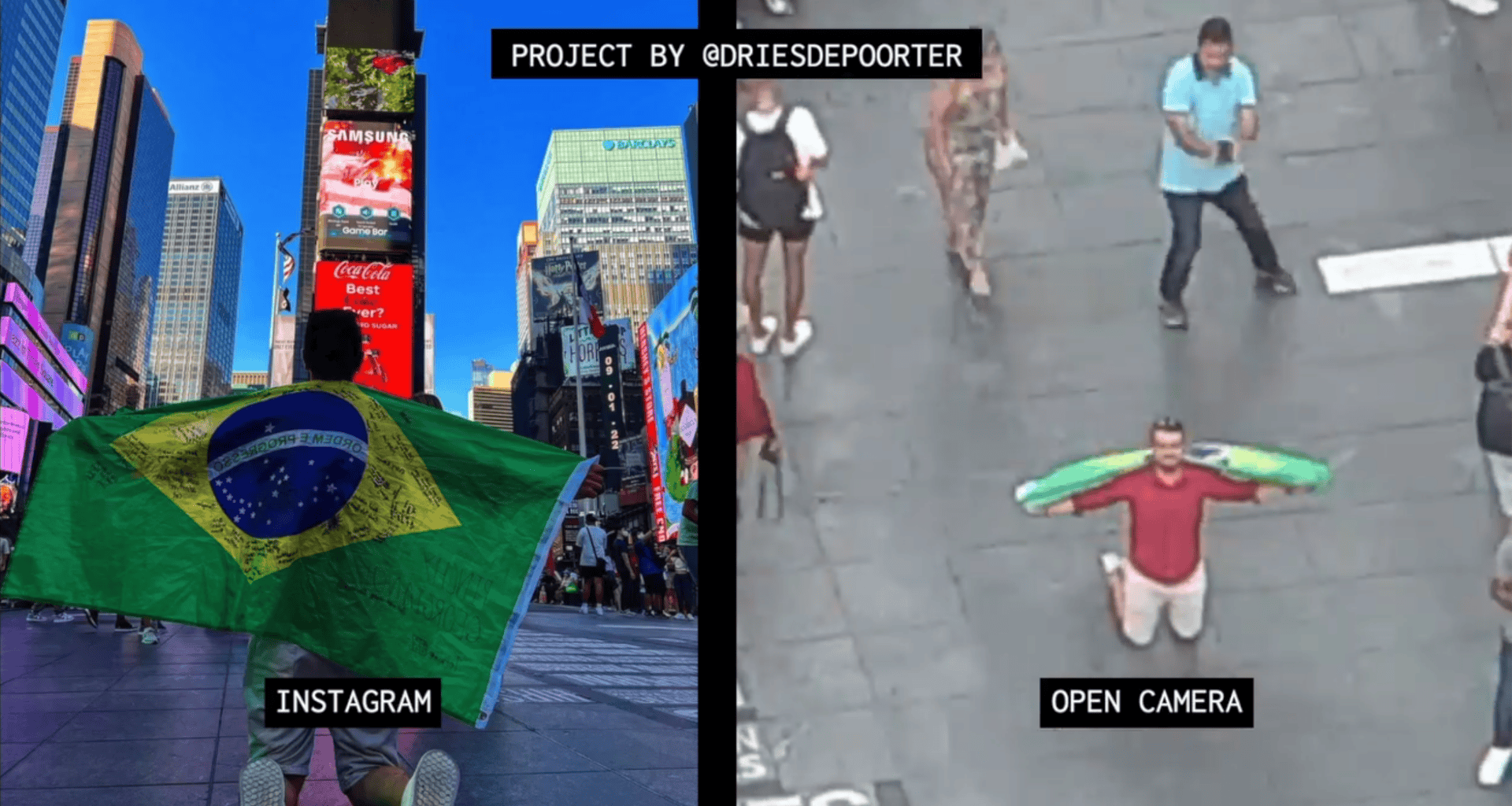 Dries Depoorter armazenou imagens capturadas em pontos de referência que podem ser identificados no Instagram, aquelas localizações que podem ser registradas nas publicações. Em seguida, ele fez um pente fino na rede social para fotos marcadas com os locais dessas câmeras. Seu software então comparou as imagens do Instagram com as imagens que foram capturadas pelas câmeras abertas.