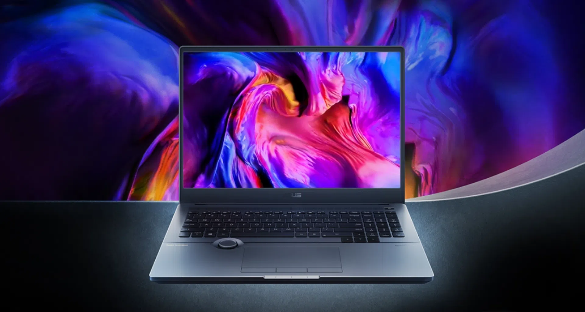 Outro detalhe importante do ProArt Studiobook 16 OLED é que o modelo conta com o ASUS Dial, um botão giratório próximo ao touchpad que pode ser utilizado para definir o tamanho do pincel, alterar a saturação, ajustar a opacidade da camada ou desfazer ações rapidamente em softwares de edição.