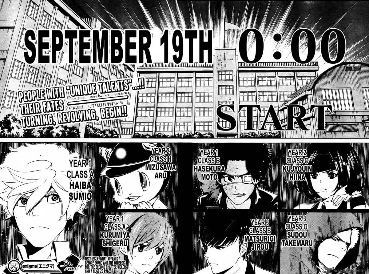 Um dia, ele vê um símbolo estranho, mas estranho ainda foi sua mãe reconhecer esse símbolo, ela fica claramente perturbada. Depois disso, Haiba não consegue impedir que uma de suas premonições se realize e alguém importante desaparece de sua vida. E se não fosse ruim o bastante, ele e mais seis pessoas vão parar no ginásio do colégio e ninguém, simplesmente ninguém consegue se lembrar de como chegou ali. Todos são alunos do ensino médio do colégio Yuuyami. E o que mais eles têm em comum? Todos possuem talentos especiais.