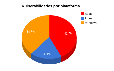 Analisando as vulnerabilidades por plataforma fica mais evidente a o empate técnico entre Apple e Microsoft e a baixa quantidade do Linux. Vale ressaltar que nesta conta, toda a plataforma Android foi considerada como sendo Linux, e uma vez que o Sistema Móvel do Google possui cerca de 90% do mercado mobile mundial não é pouca coisa.