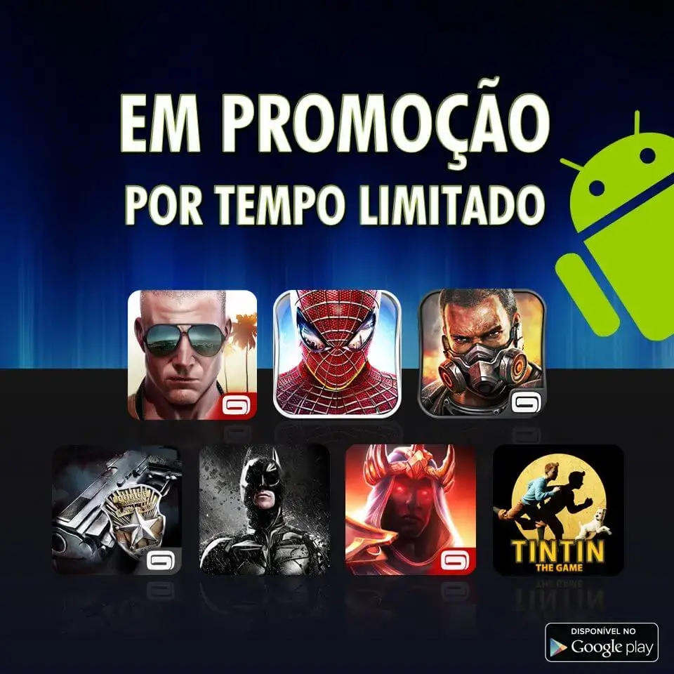 Pra quem gosta de jogar no smartphone ou tablet com sistema Android, uma boa pedida é aproveitar a promoção da Gameloft para 7 jogos desenvolvidos pela empresa. Os descontos chegam a 80% e cada game sai por apenas R$ 2,36 . Confira as opções:
