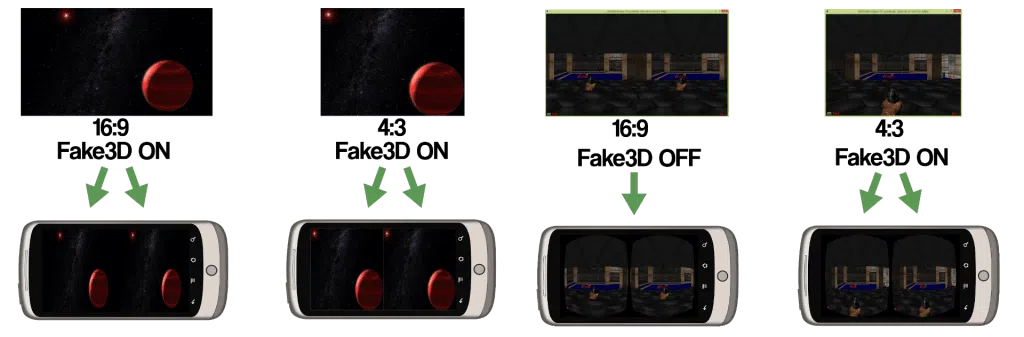 Programmer som allerede er klargjort for bruk med virtual reality-enheter, fungerer naturlig. Spill som ikke var forberedt for å bli sett i 3D, krever programvare for å skape den tredimensjonale effekten, som f.eks sving. I mangel av disse vil trinus har også en Fake3D-modus. Spillet må kjøres i vindusmodus, og i et 4:3-forhold, i motsetning til det mer brukte 16:9. Blant spillene som allerede er testet er Arma 2, GTR2, Skyrim, Dirt 3, blant annet, inkludert eldre spill som Doom.
