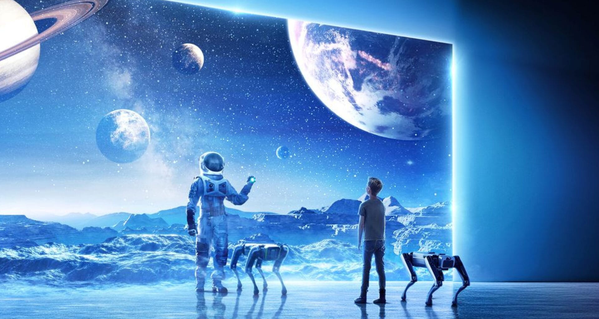 Outro exemplo citado pela empresa foi o vídeo de um pai e filha explorando Marte por meio do metaverso, com o robô Boston Dynamics Spot estando no planeta vermelho. A empresa também ressaltou que a manufatura de robôs da CES 2022 também pode ser útil para o setor de logística.