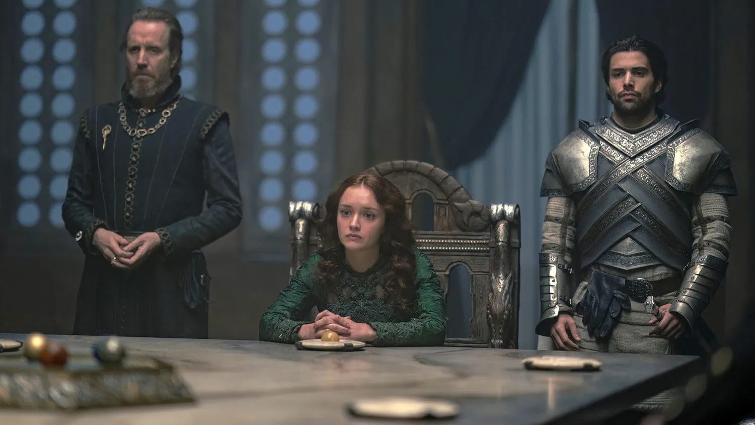 O sol nem tinha raiado e os membros do Pequeno Conselho já estavam reunidos para receberem a notícia e discutirem sobre como proceder. Alicent conta o que ela tinha entendido como o último desejo de Viserys, mas nem todos estão de acordo com esse cavalo de pau nas intenções do então rei, que passara décadas defendendo a sucessão da sua primeira filha, com a sua primeira esposa, Aemma Arryn (Sian Brooke). A tensão no ar era tão densa que dava para cortar com uma faca.