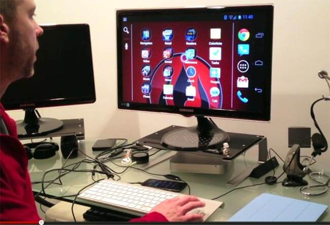 A transposição da interface do smartphone para o monitor foi bem sucedida, fazendo com que o usuário criasse o primeiro Desktop com o sistema Android 4.0 de que se tem notícia. Veja abaixo:
