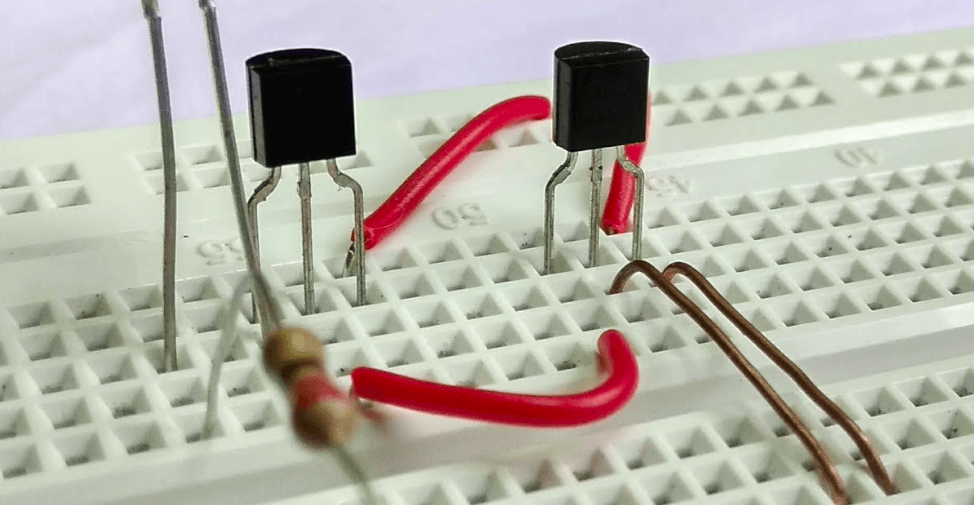 Mas transistores como esse podem ser conectados com portas lógicas para que suas conexões de saída retornem às suas entradas. O transistor fica ligado mesmo quando a corrente base é removida. Cada vez que uma nova corrente de base flui, o transistor “liga” ou desliga.